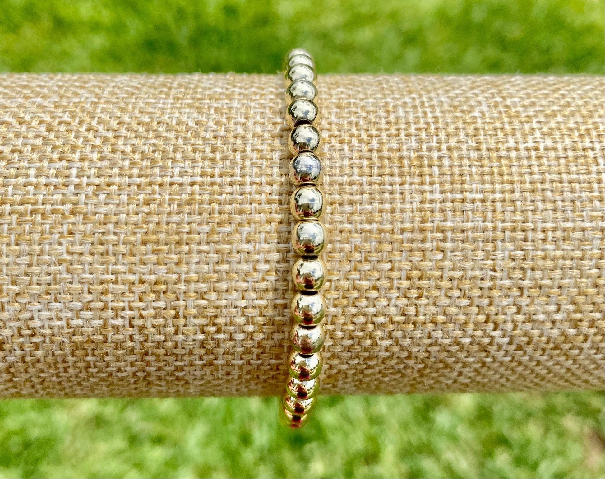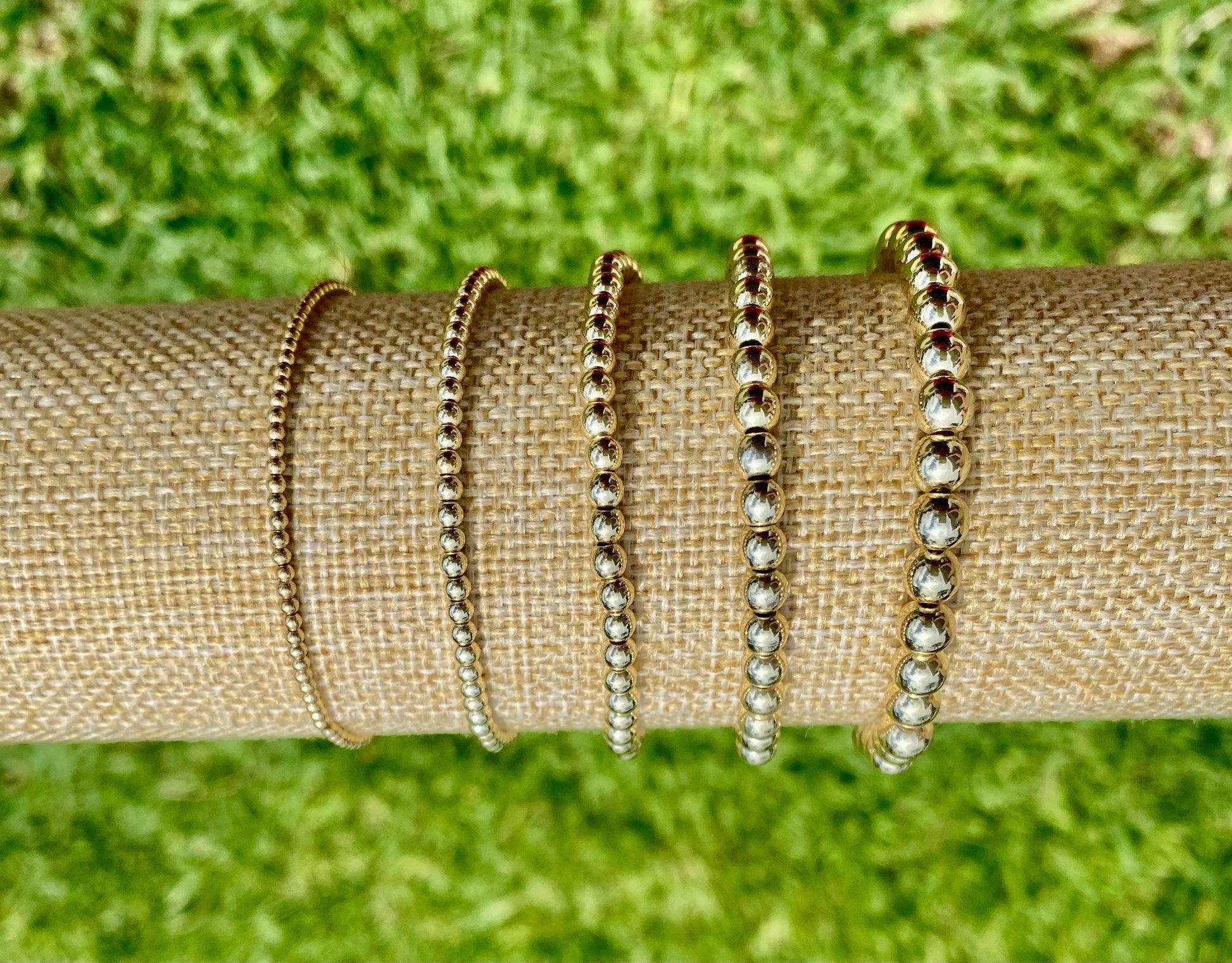 14K Gold Filled Beaded Stacking Bracelet: Non Tarnish, 3, 4, 5, 6 mm Bracelet.