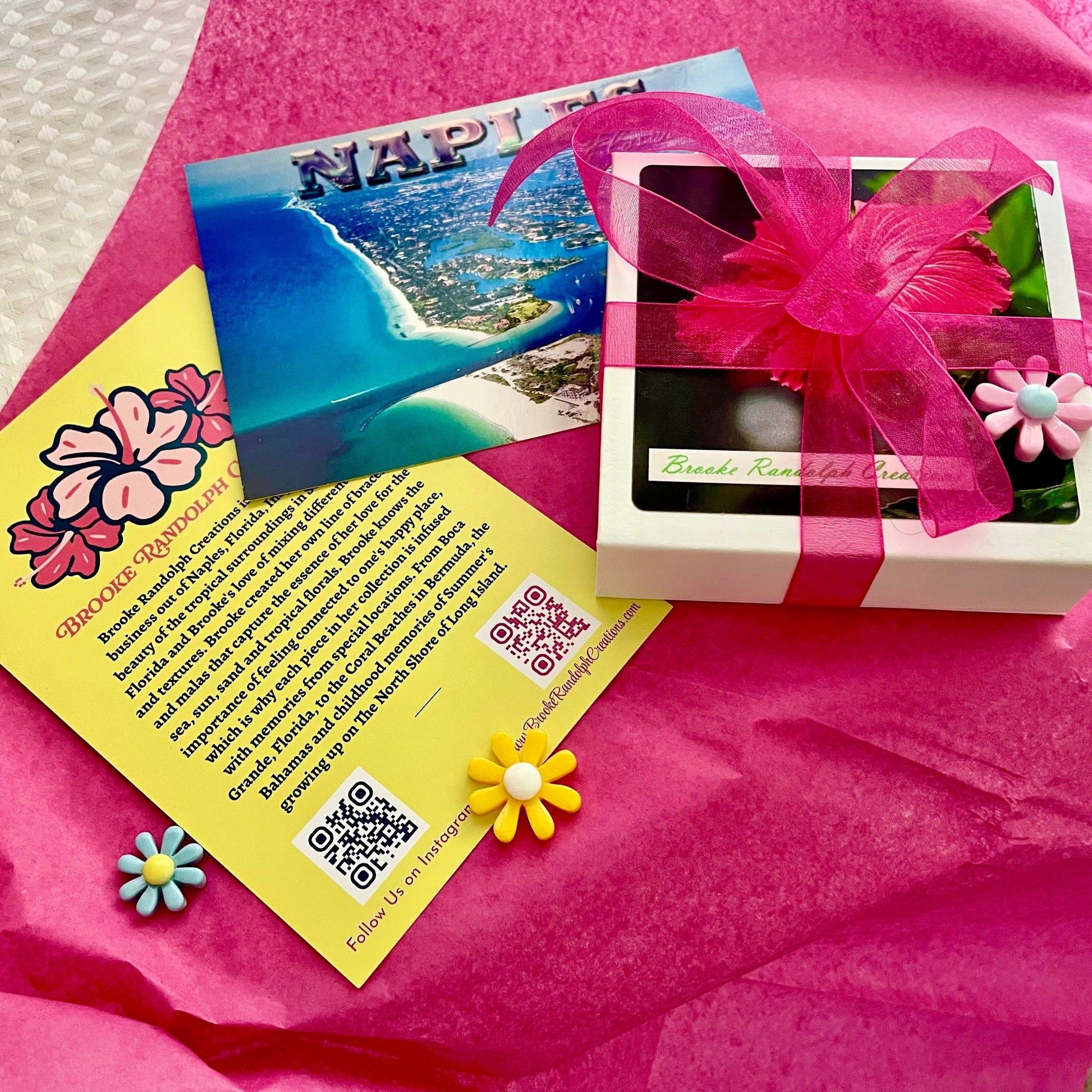 We believe Presentation is everything. All of our Bracelets come gift wrapped. They come in our signature soft close Gift Boxes with color coordinated tissue, fun trinkets and topped off with a fun bow.