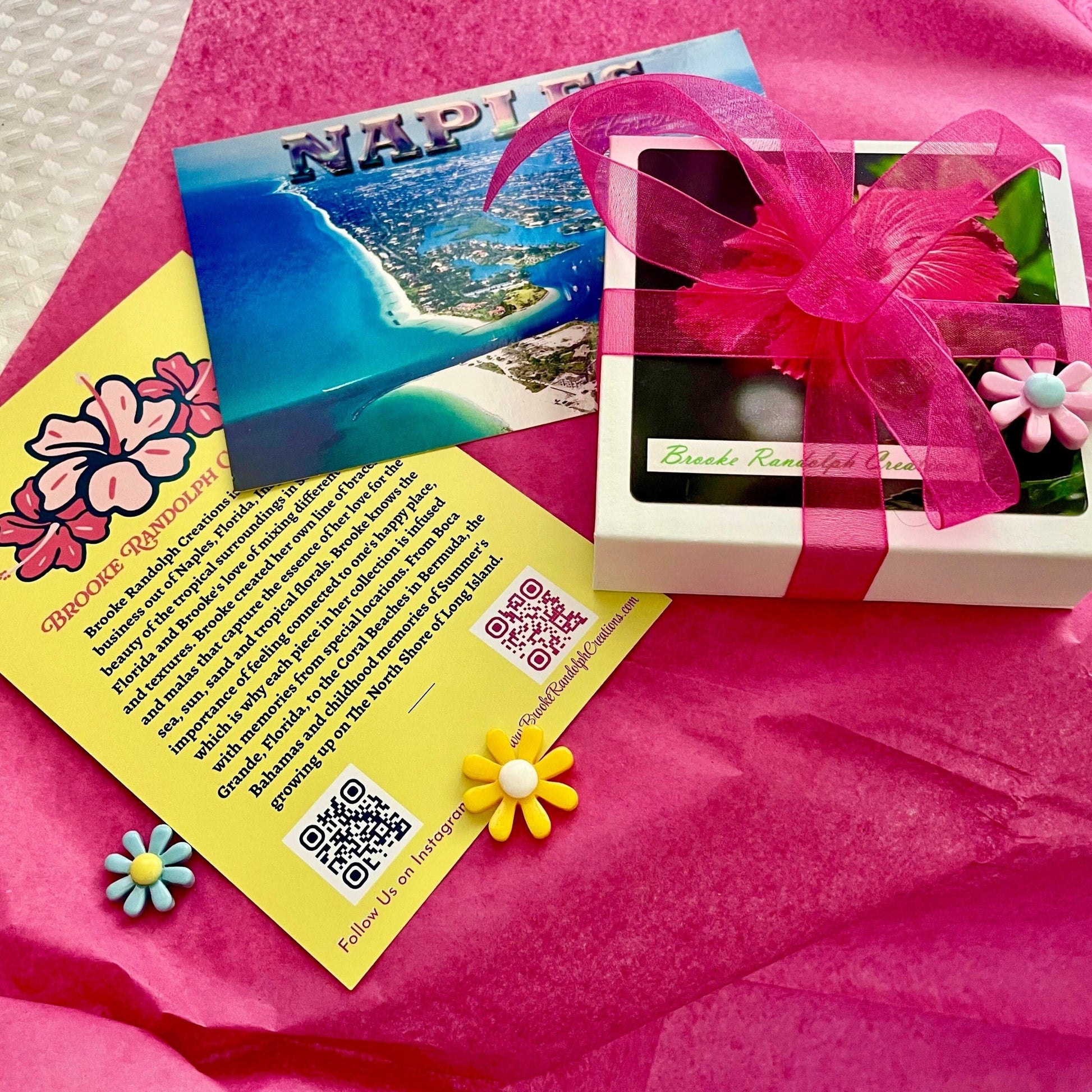 We believe Presentation is everything. All of our Bracelets come gift wrapped. They come in our signature soft close Gift Boxes with color coordinated tissue, fun trinkets and topped off with a fun bow.